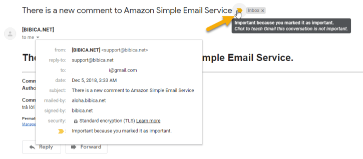 Trong thử nghiệm của mình thì khi dùng Amazon Simple Email Service, email không những vào inbox, mà còn được google gắn thêm nhãn “QUAN TRỌNG” để bạn không bỏ sót nữa mới gúm chớ 😛