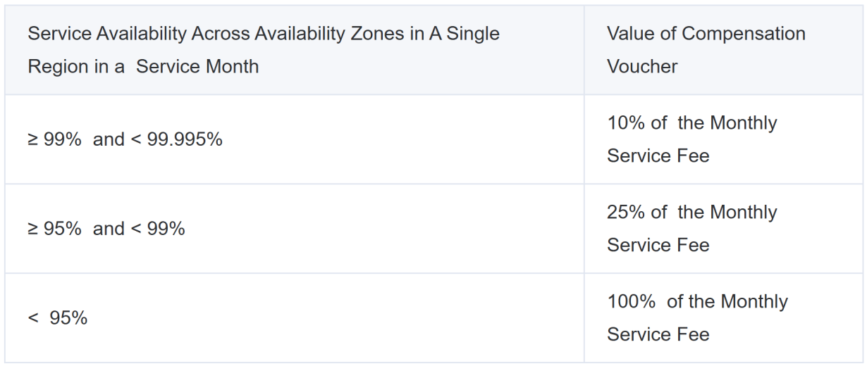 Tencent Cloud cam kết SLA uptime tối thiểu 99.975%, dễ hiểu trong 1 tháng, downtime tối đa ~11 phút, cao hơn mức này Tencent sẽ đền bù credit