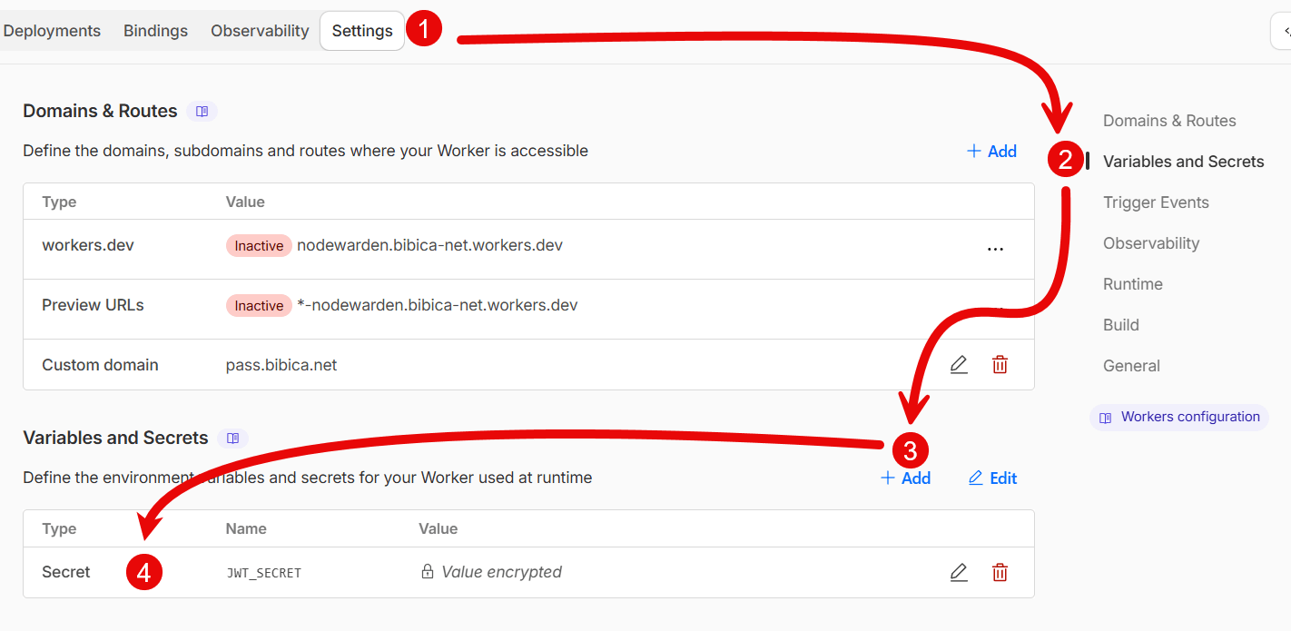 Settings->Variables and Secrets->Add - Type