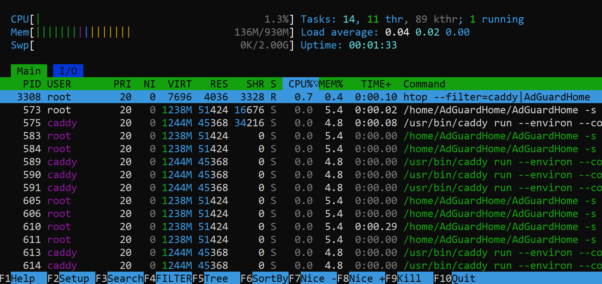 htop --filter="caddy|AdGuardHome"