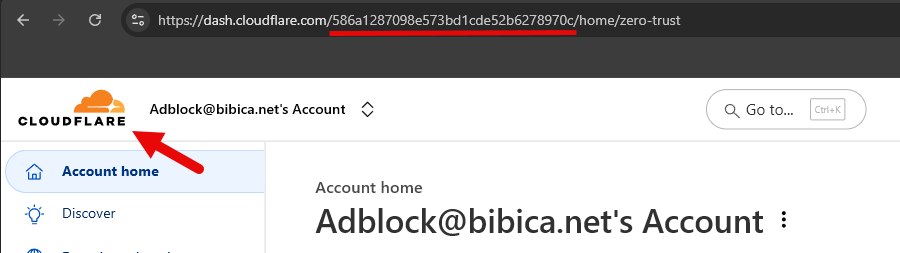 Truy cập vào trang chủ hoặc click vào icon Cloudflare ở góc trên bên trái, sẽ thấy 1 dãy số 586a12870xxx573bd1cde52b6278970c