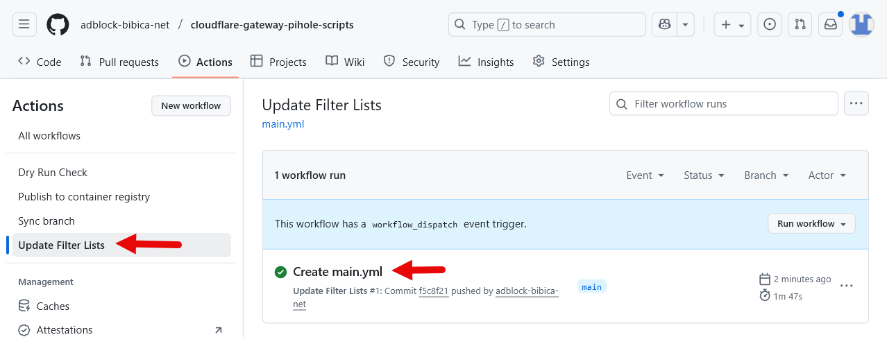 , workflows sẽ tự chạy lần đầu, bạn sẽ thấy có thêm workflowsUpdate Filter Lists