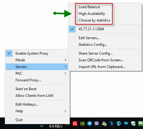 Thực tế thì tới mình cũng chỉ dùng 1 con Singapore để đi web thông thường, và 1 con USA để đi 1 số trang only US (cho vui là chính vì giờ cũng hiếm trang nào chỉ cho IP US vào), nhu cầu cũng chỉ tới thế là kịch, nên cũng hiếm khi nào dùng mấy chế độ như Load Balance, High Availability, giới thiệu thêm để mọi người biết thêm, chứ thực ra gần như chỉ cần chọn Enable System Proxy và Mode -> Global là xong rồi