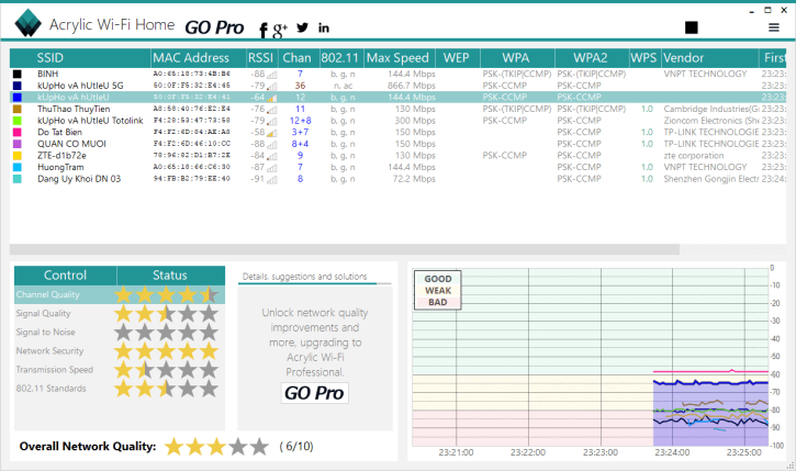 Ví dụ đơn giản, nhà bạn đang dùng channel 1, các nhà xung quanh nếu cũng dùng 1 hoặc 2, thì sóng sẽ đụng, khiến bạn không thể nào kết nối tốt hoặc sử dụng max băng thông được, lúc này bạn cần chuyển sang các channel khác xa hơn, thông thường bạn chỉ cần download 1 phần mềm WiFi scanner như Acrylic WiFi, bật lên, nhìn các sóng xung quanh, thấy họ để channel nào thì set sang channel khác xa 1 tí là được