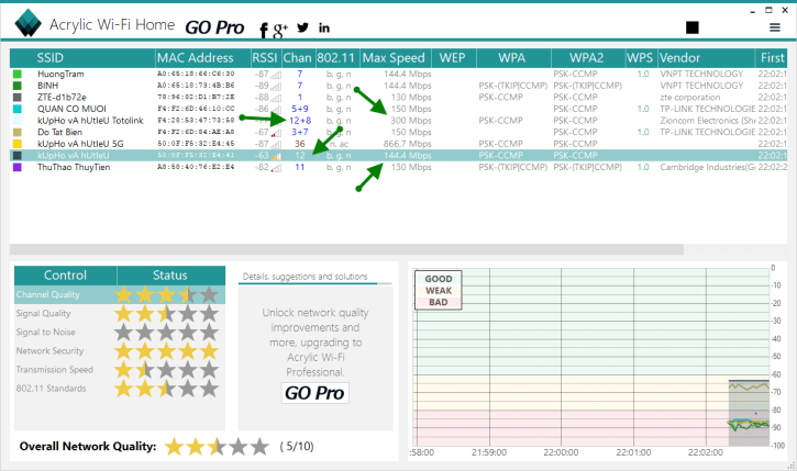 Hơi đau đầu, vì sóng 2.4 GHz nó rất dễ đụng channel với các thiết bị khác, nhất là ở các thành phố lớn hay các chung cư thì cứ gọi là banh xác, thành ra nếu bạn bị lọt giữa 1 rừng sóng 2.4 GHz thì gần như không có cách nào có thể hạn chế được cả, hãy sử dụng sóng 5 GHz, còn nếu bắt buộc phải sử dụng thì hãy cố hết sức có thể vậy