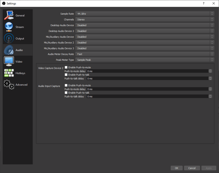 Setting bên trong tổng thể là thế, còn setting bên ngoài thì add Video Capture Device vào