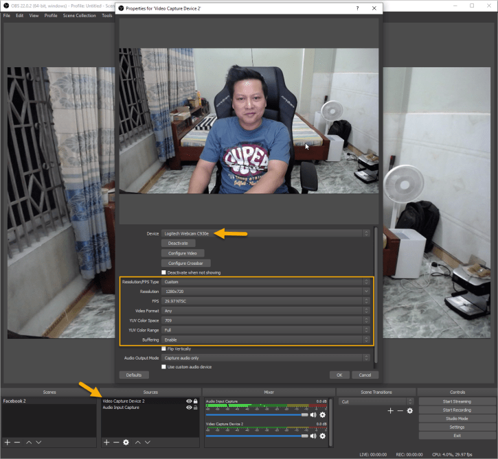 Dưới đây là cấu hình OBS Studio mình setting cho Logitech C930E khi livestream facebook, bạn nào quan tâm có thể tham khảo