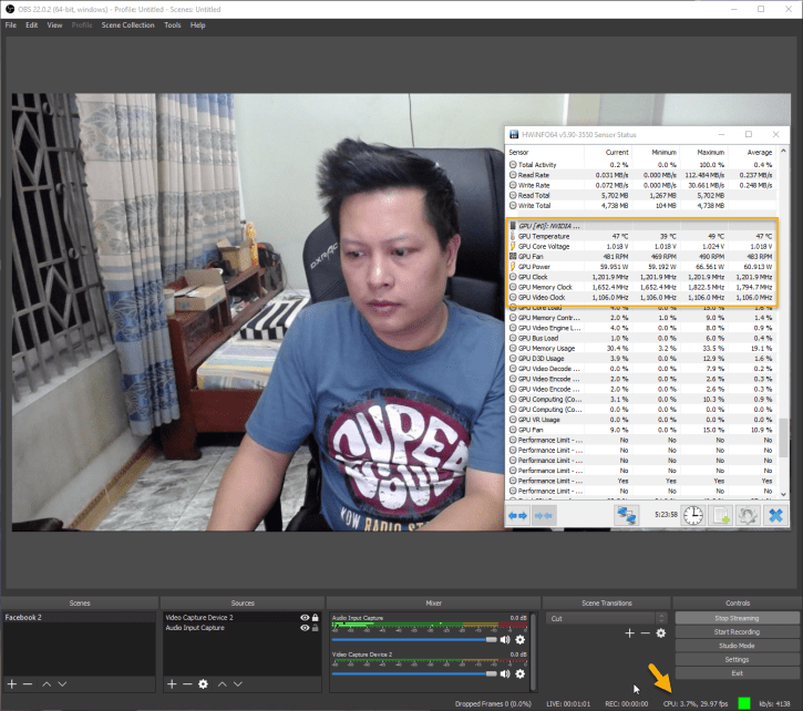 Dùng GPU để encode, nên CPU gần như không phải chạy gì cả, có điều ở đây mình không chắc vấn đề liên quan tới GPU là tại sao 😀 không biết khi setting OBS Studio Output dùng GPU nó có dùng GPU để encode không? chứ nhìn thì thấy con GPU nó không làm gì cả 😀 cũng không chắc setting như thế thì nó tự chuyển sang encode bằng trực tiếp con Logitech C930E không nữa 😛 có điều mình setting như thế thì khi live gần như cả CPU và GPU của mình nó đều … không chạy :]]